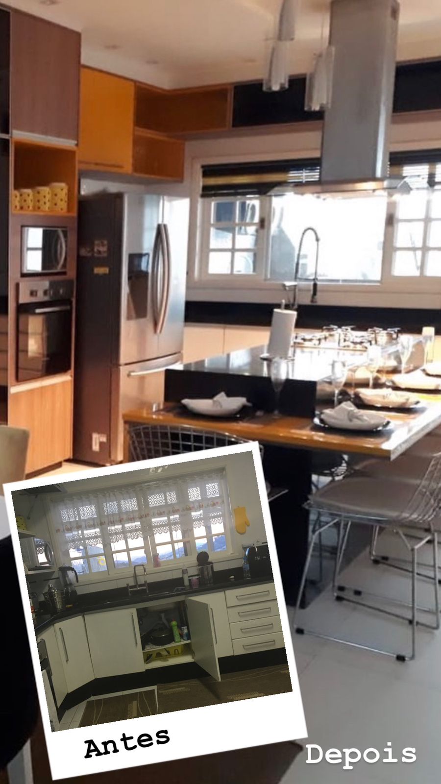 Reforma para melhor aproveitamento do espaço com mais armários para uma cozinha mais organizada.
